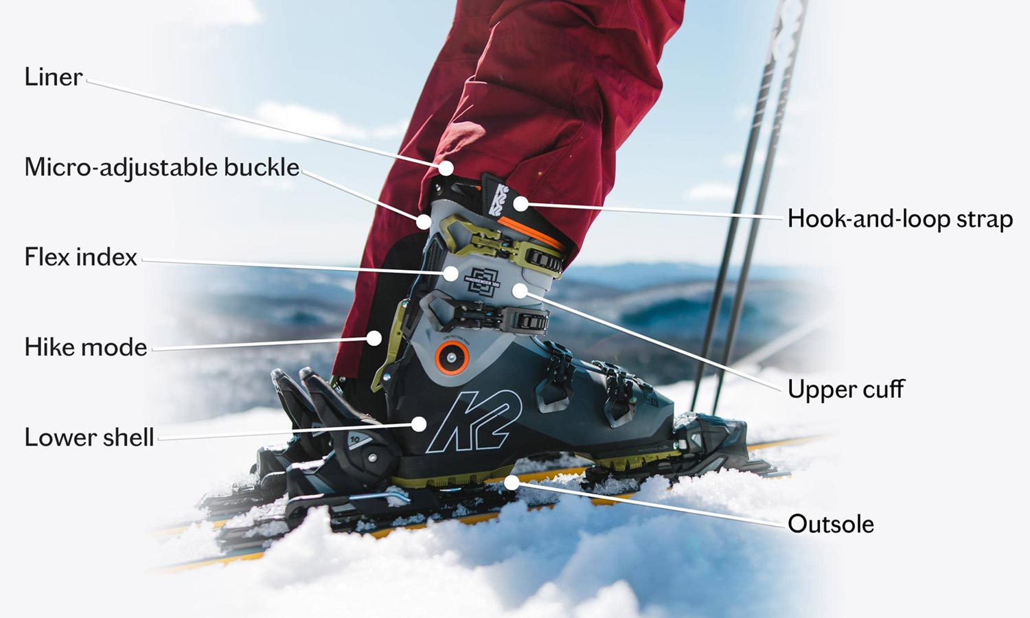 For each of their boot models, brands define a “flex” index, which measures the capacity of the boot to fold forward. The higher the flex, the stiffer the pair of boots, whereas the lower the flex, the more flexible the boots.