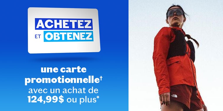 Elle est valide en ligne et dans tous les magasins participants, à l’exception de Sports Experts Entrepôt à Mirabel.
